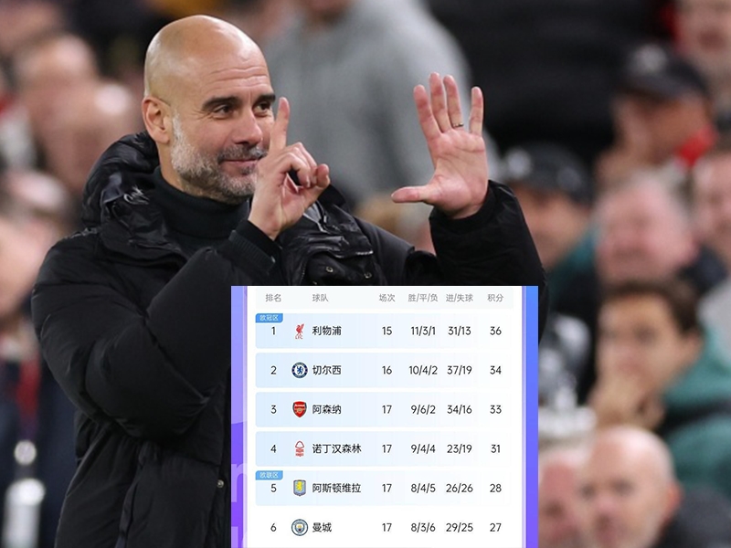 本賽季初,曼城英超9場(chǎng)不敗領(lǐng)跑。但第10輪開始,曼城遭遇四連敗,近8場(chǎng)聯(lián)賽1勝1平6負(fù)。曼城如今已經(jīng)跌至第六名,多賽一場(chǎng)落后第四的森林4分,多賽兩場(chǎng)落后榜首利物浦9分。