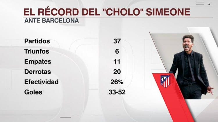 12月22日訊 在西甲第18輪比賽中,馬競客場2-1逆轉(zhuǎn)巴薩,據(jù)ESPN統(tǒng)計(jì),這是西蒙尼執(zhí)教生涯對(duì)陣巴薩的第6場勝利。