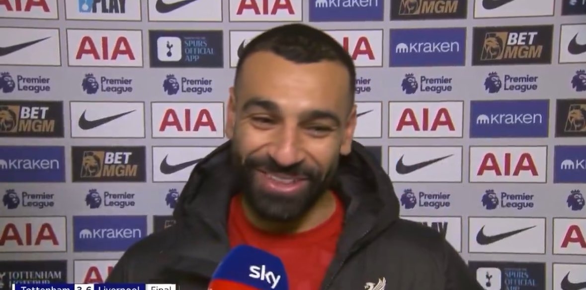 12月23日訊 英超第17輪,利物浦客場6-3大勝熱刺,賽后本場打進2球的薩拉赫接受采訪。