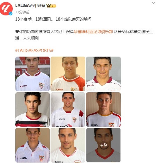 這18張照片也完整記錄了納瓦斯職業(yè)生涯18年的容貌變化,西甲官博還祝福寫道: