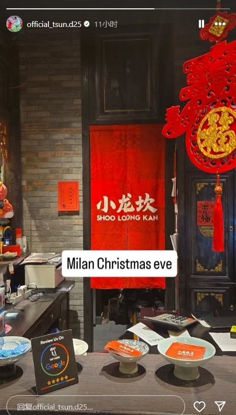 12月25日訊 最近,戴偉浚前往歐洲度假,平安夜他在意大利米蘭享用了火鍋。