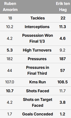 附阿莫林和滕哈赫英超場(chǎng)均數(shù)據(jù)對(duì)比: