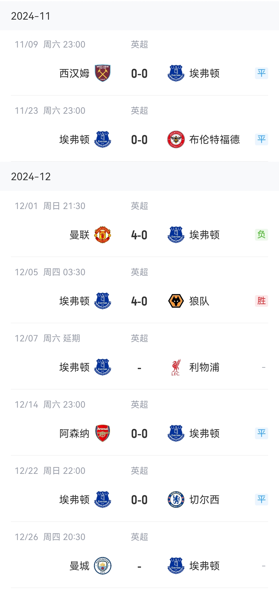 埃弗頓近6輪1勝4平1負(fù)