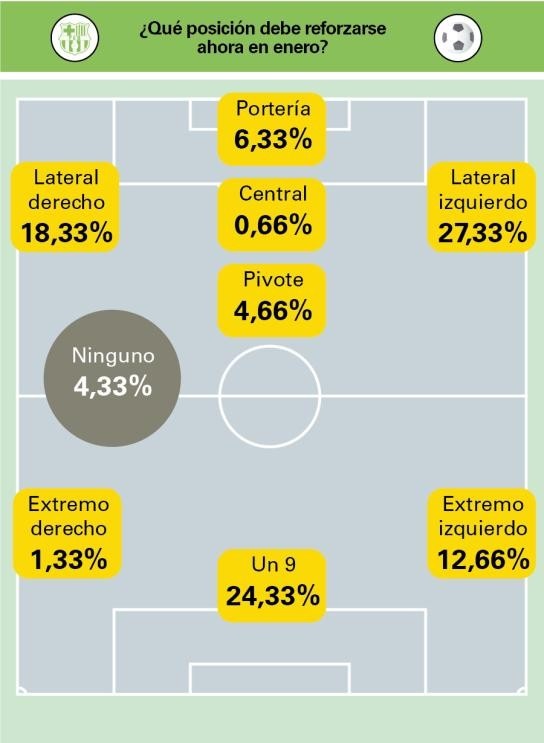 緊隨其后的是中鋒位置,24.33%的受訪者認(rèn)為巴薩應(yīng)在1月引進(jìn)一名9號球員。雖然萊萬目前以16球領(lǐng)跑射手榜,但他最近8場聯(lián)賽僅打入2球。這表明球員可能出現(xiàn)了身體和心理上的疲勞,因此巴薩需要引進(jìn)一名可靠的中鋒來幫助他分擔(dān)壓力。