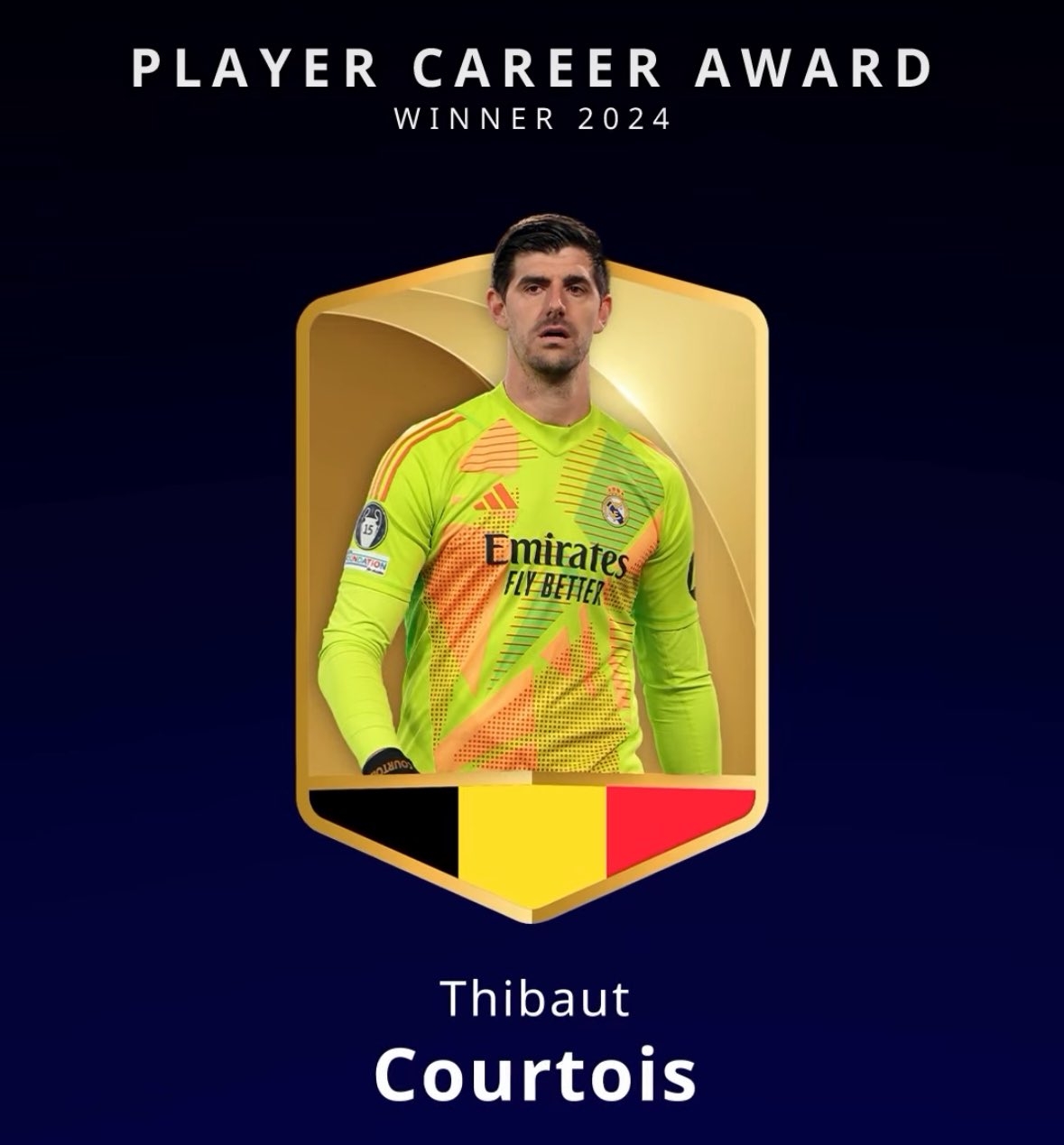 12月28日訊 官方消息,庫(kù)爾圖瓦獲得2024環(huán)足獎(jiǎng)球員生涯獎(jiǎng)。