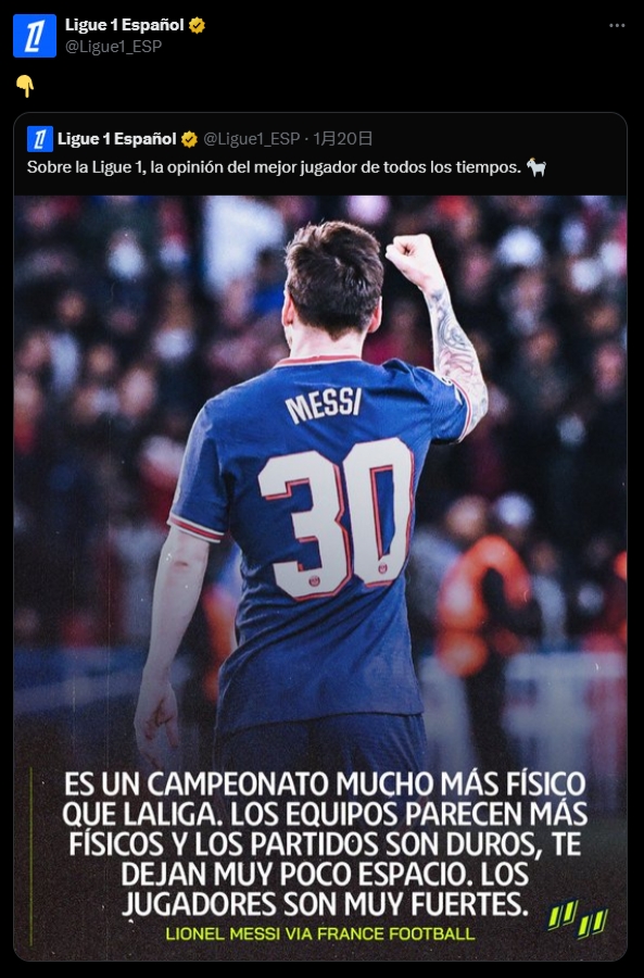 法甲西語官推表示:關(guān)于法甲,史上最佳球員的觀點(diǎn)。
