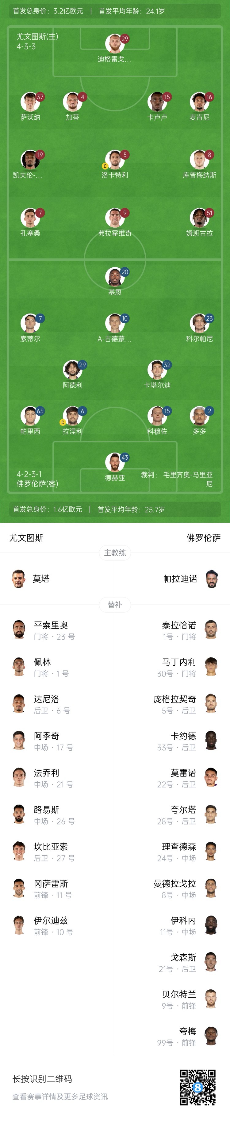 12月30日訊 意甲第18輪,尤文vs佛羅倫薩比賽即將打響。賽前首發(fā)出爐。