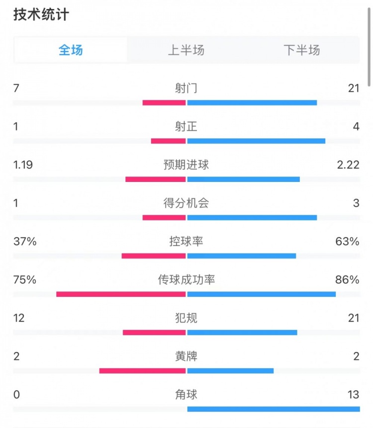 11月7日訊 今天凌晨歐冠比賽,恰20點射,國米1-0阿森納。兩隊全場數(shù)據(jù)(國米在前):