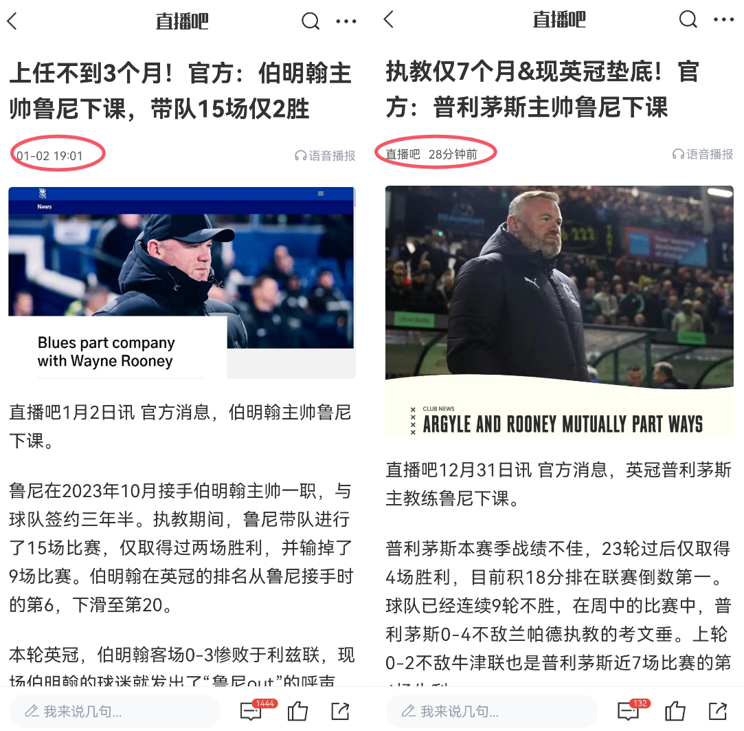 12月31日訊 帶隊僅半個賽季,英冠普利茅斯官宣主帥魯尼下課。