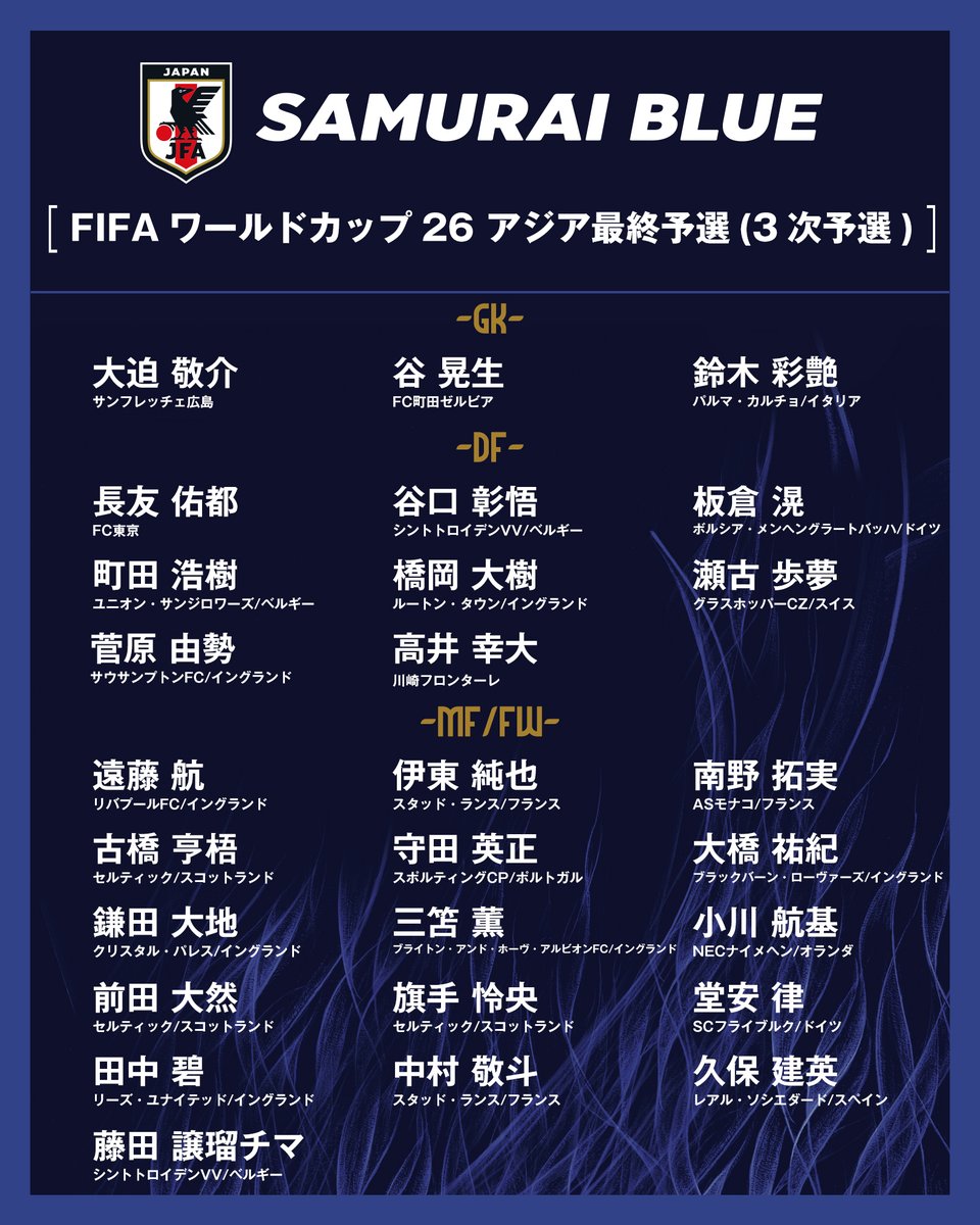 在9月、10月首獲國(guó)家隊(duì)征召的望月-亨利-海輝和關(guān)根大輝本次未能入選,效力于英冠盧頓的橋?qū)髽浔敬斡瓉砘貧w。富安健洋、伊藤洋輝、中山雄太三人因傷長(zhǎng)期無緣俱樂部比賽,繼續(xù)缺席名單,在比甲聯(lián)賽活躍的渡邊剛、藤井陽(yáng)也,逐漸坐穩(wěn)阿爾克馬爾主力的每熊晟矢,以及在斯圖加特嶄露頭角的蔡斯-昂利也都沒能獲得征召。