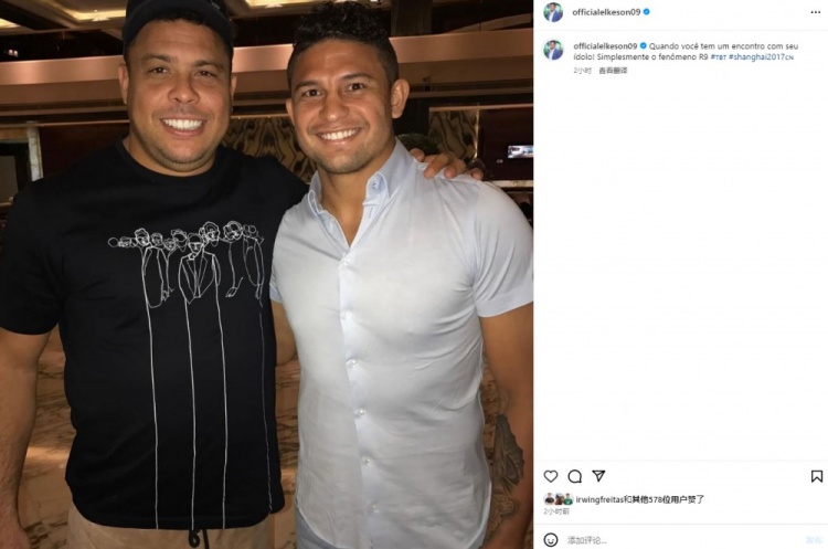 11月8日訊 歸化球員艾克森近日在個(gè)人社交媒體上曬出了自己2017年在上海與羅納爾多的合影,并寫道:當(dāng)你遇到你的偶像時(shí)!