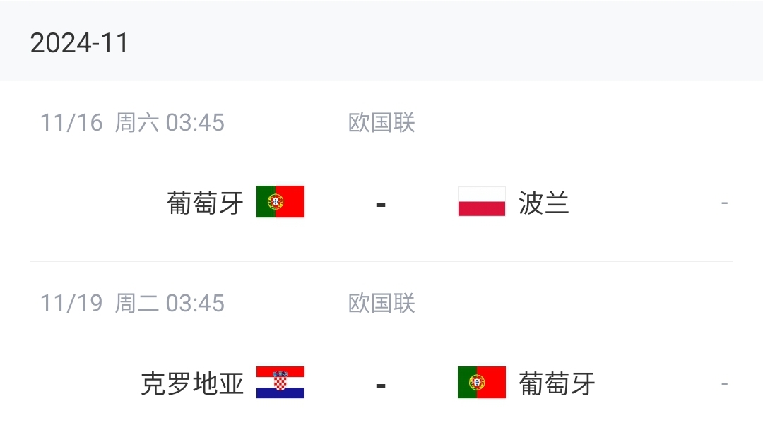 本次國際比賽日,葡萄牙將對陣波蘭和克羅地亞。