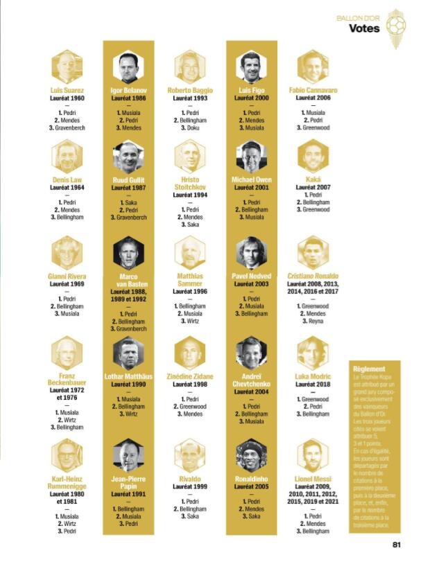 C羅連續(xù)3年未參與科帕獎(jiǎng)投票,他上次參與投票是在2021年,投票順位為:1-格林伍德、2-門德斯、3-雷納。