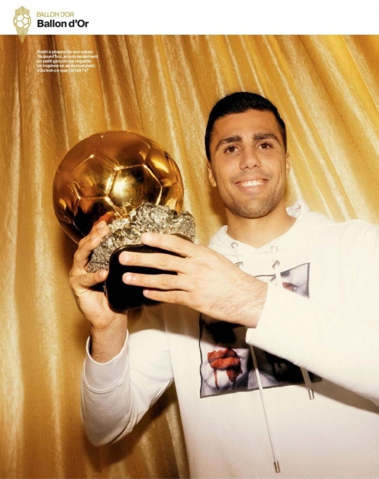 羅德里,首先祝賀你獲得《法國(guó)足球》頒發(fā)的金球獎(jiǎng),今年三月,你曾告訴我們,你為在上屆評(píng)選中獲得第五名感到自豪。七個(gè)月后,你成為了第一名,對(duì)此有什么感想?