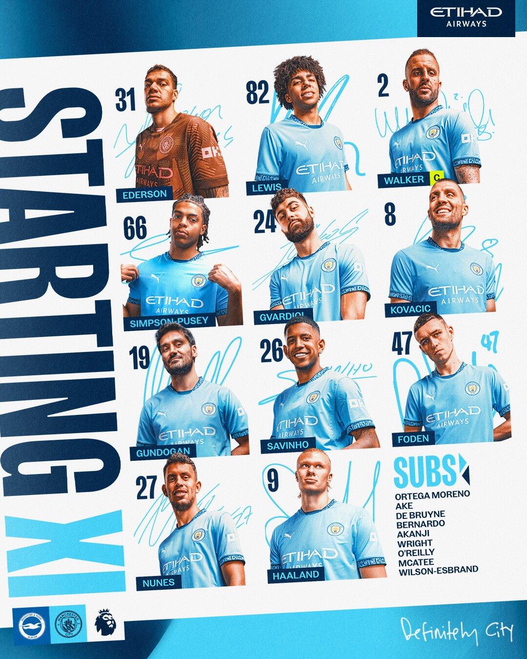 11月10日訊 英超第11輪,曼城客場對陣布萊頓。賽前,官方公布了本場的首發(fā)名單。