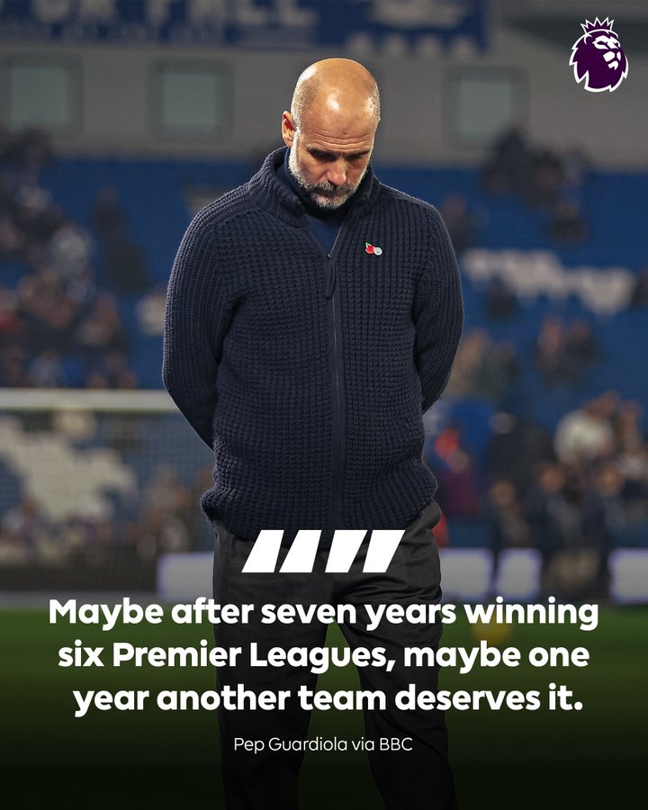 瓜迪奧拉:在7年6奪英超之后,也許該有一年另一支球隊(duì)值得冠軍了