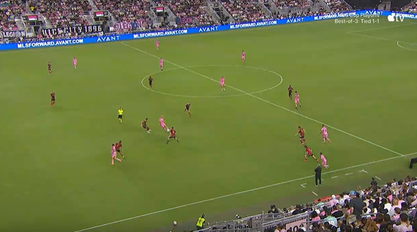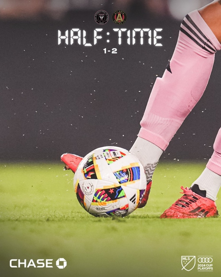 傷停補時5分鐘。上半場比賽結(jié)束,邁阿密國際1-2亞特蘭大聯(lián)。