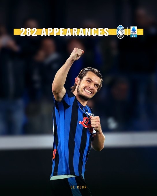 亞特蘭大官方表示球隊中場德容恩為球隊出場了282次意甲,他成為了亞特蘭大隊史在意甲出場次數(shù)最多的球員。