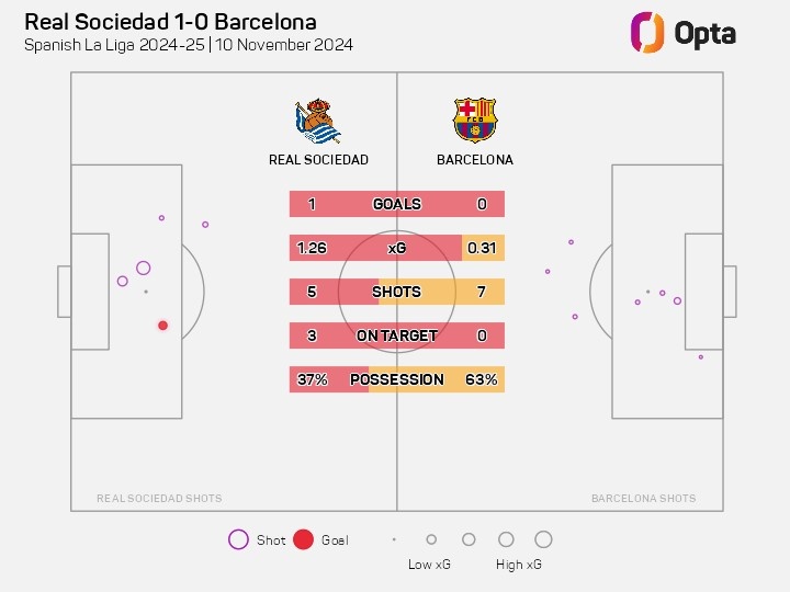 11月11日訊 西甲第13輪,巴薩半場0-1皇社。
